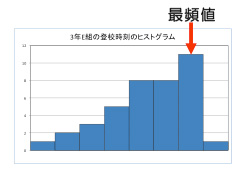 最頻値とは最も多い度数(頻度)を示す値の事です。ヒストグラムから最頻値を求める場合には、最も度数の多い階級の階級値となります。